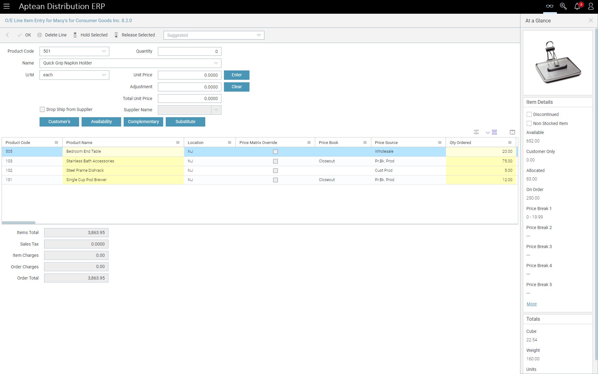 Aptean Distribution ERP is fully integrated with industry-specific requirements, such as import tools, EDI, retail labeling, and RFID. The software emphasizes flexibility in order to minimize the need for costly and time-consuming customization work, especially in its warehouse capabilities, which includes numerous efficiency tools such as directed putaway, wave picking, and cross docking.