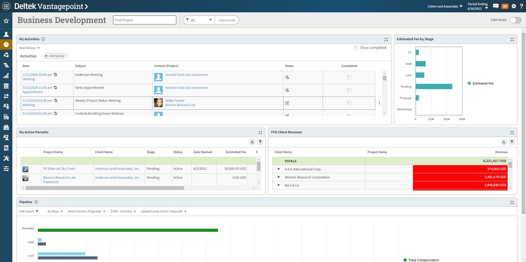Deltek Vantagepoint is a comprehensive ERP solution designed specifically for project-based businesses, particularly those in the professional services sector. It builds on Deltek’s long history in project-based ERP by offering a more intuitive, modern platform that supports the entire project lifecycle..