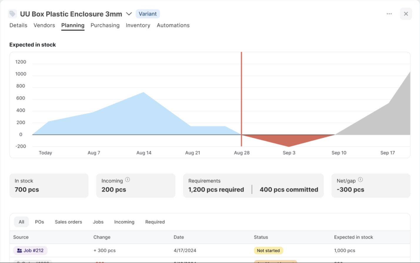 Digit offers aggregated and time-based material planning views. These help teams see demand and shortages, generate purchase orders or manufacturing orders, and plan ahead to avoid stock interruptions.