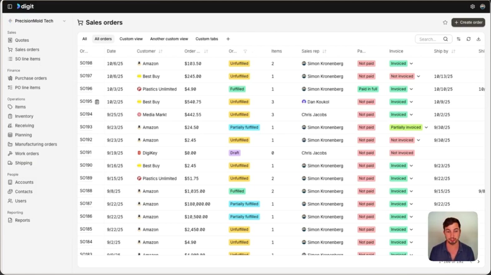 While it's marketed as an ERP alternative, Digit's open API gives teams options to extend its functionality or connect with other systems (including ERPs), useful for workflows involving Digit API integrations, particularly multi-tier implementations.