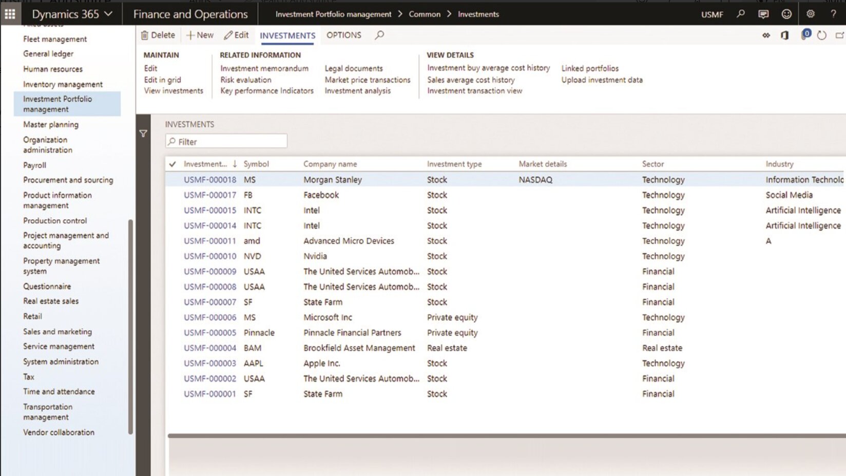 Investment Portfolio Managment software on Dynamics 365