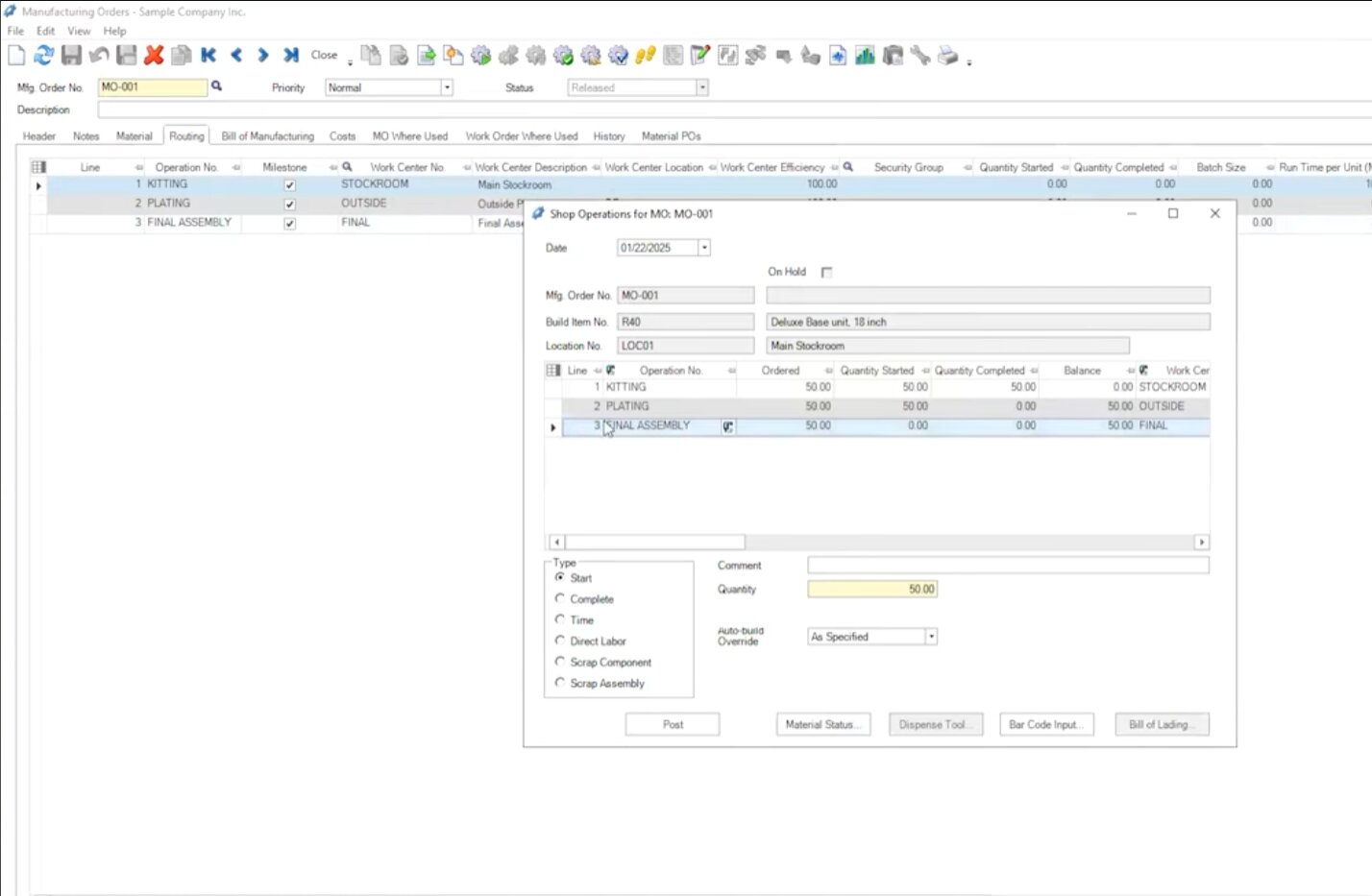 In its most basic form, MISys Manufacturing provides core capabilities – including inventory tracking and work in process (WIP); standard, average, LIFO or FIFO costing methods; cost adjustment with roll-up through all BOM levels; Crystal Reports generation; and instant transaction history, where-used (BOM implosion) and outstanding order status – while additional modules offer functionality in advanced purchasing, advanced production, material requirements planning, shop floor control, serial/lot tracking, bin tracking, labor tracking and bar coding.