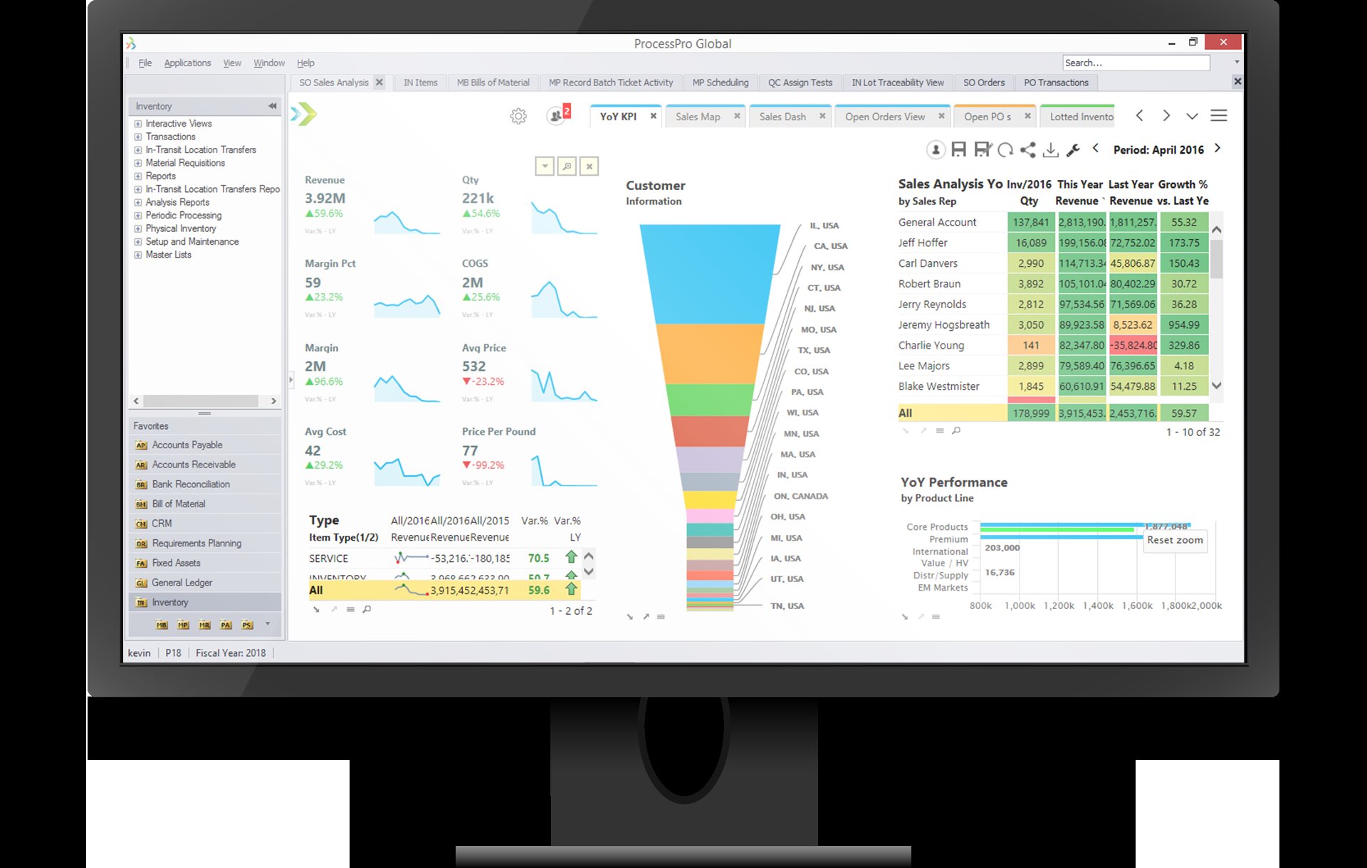 Aptean Process Manufacturing ERP ProcessPro Edition links all information in a business intelligence functionality. There is real-time visibility of information, the platform helps to organize and track manufacturing processes, planning, and execution, inventory management, quality assurance, compliance, financials, sales, and more.