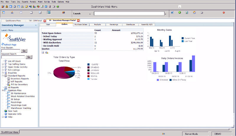 - Sales and CRM: Order processing, customer account history, quoting, and relationship management features all accessible from a single system.