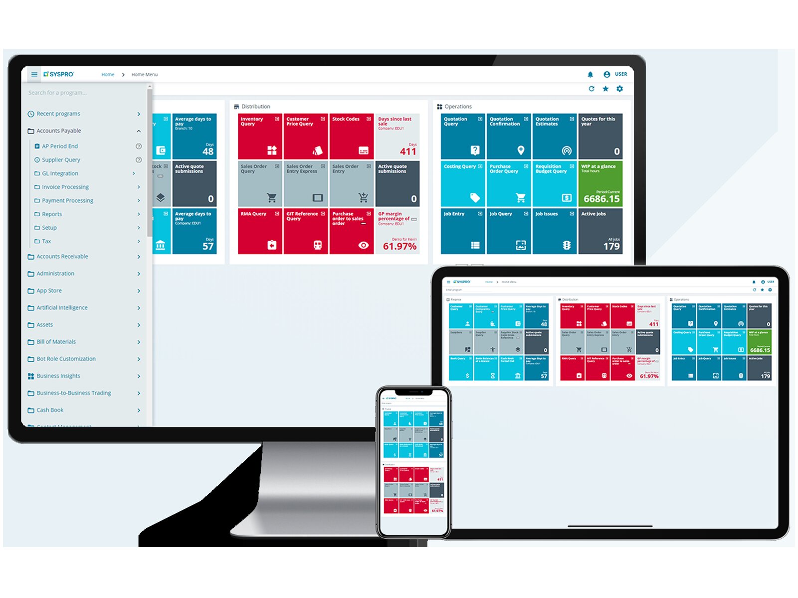 Specializing in the manufacturing and distribution sectors, SYSPRO Enterprise Resource Planning software provides the solutions, processes, and tools to assist Manufacturers and Distributors to manage data and gain key business insights. The solution is scalable and can be deployed in the cloud, on-premise, or hybrid, and accessed via the web or windows applications, to provide customers with choice and flexibility.
